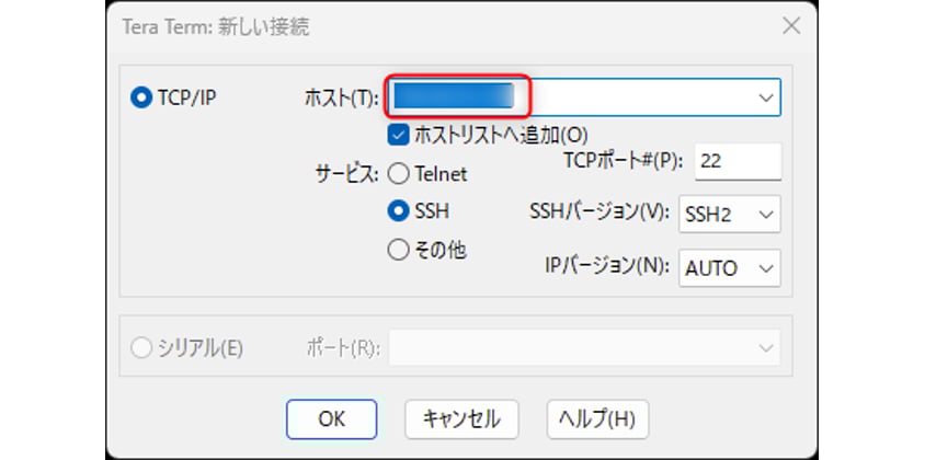 赤い囲いにIPアドレスを入力後、OKボタンをクリックしてください。