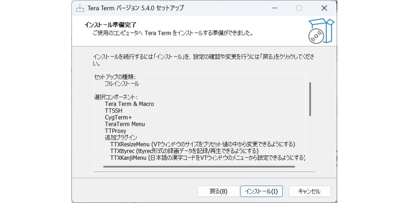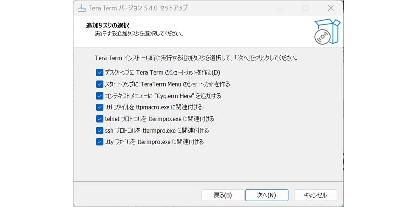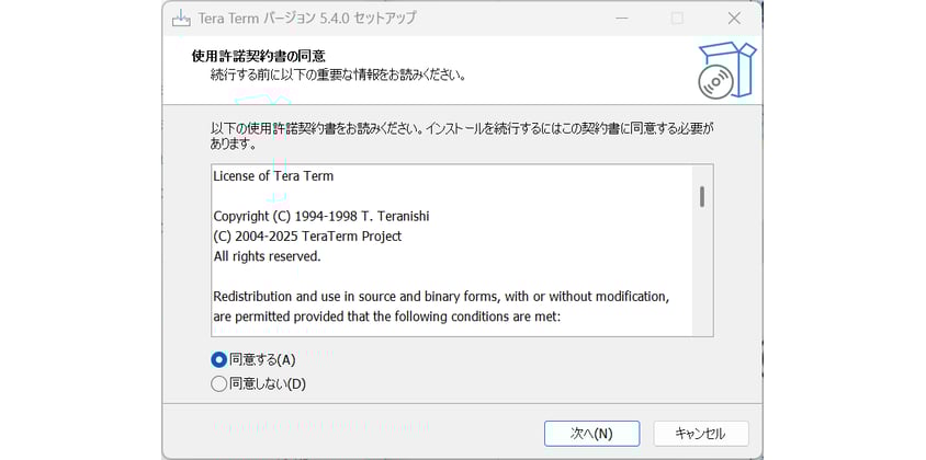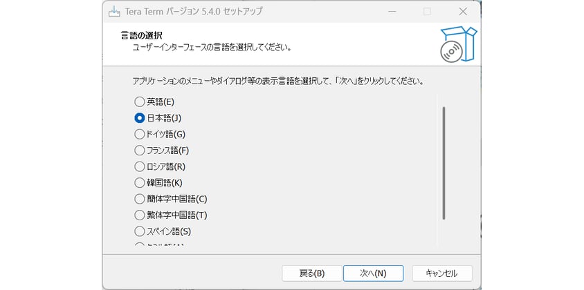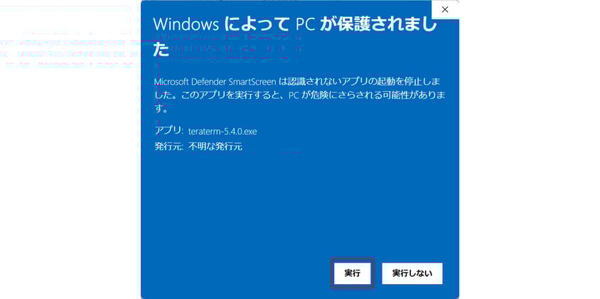 ダウンロードした teraterm-5.4.0.exe をダブルクリックすると上記の画像が出ますので