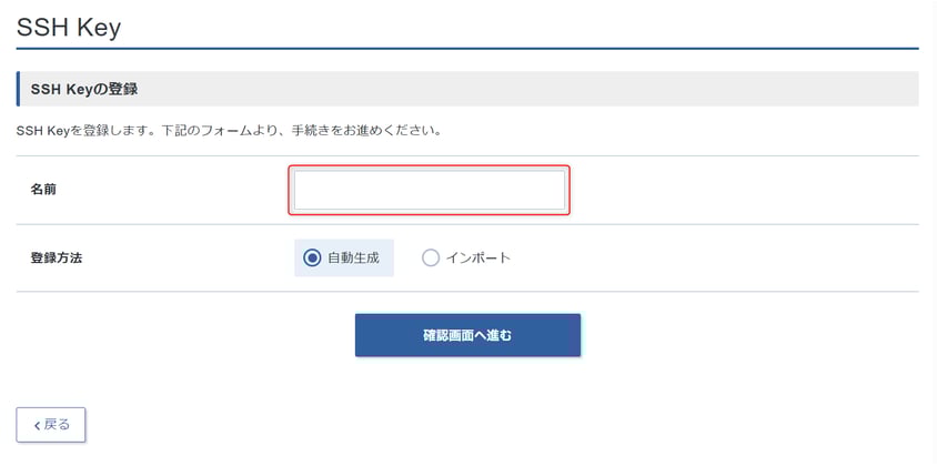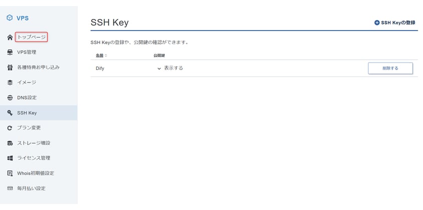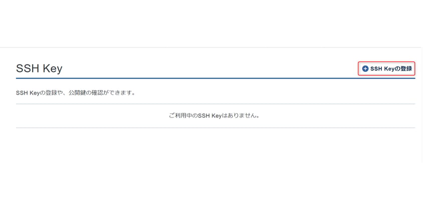 赤い囲いのSSH Keyの登録をクリックしてください。