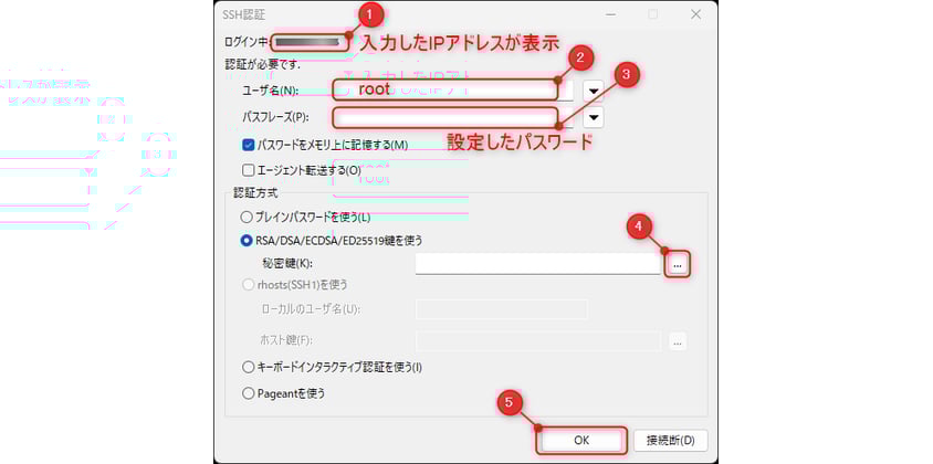 ④ ダウンロードした SSH Key を選択(自分の場合 Dify.pem)